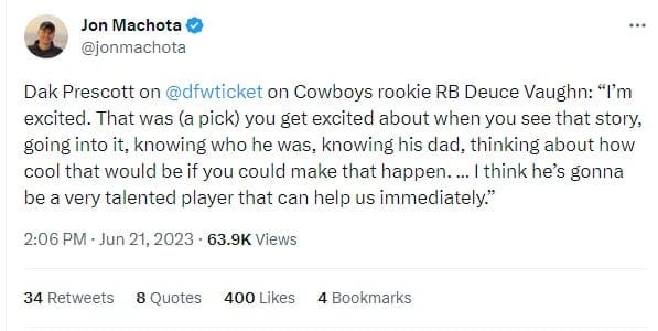 Deuce is already earning praise and support from Prescott.