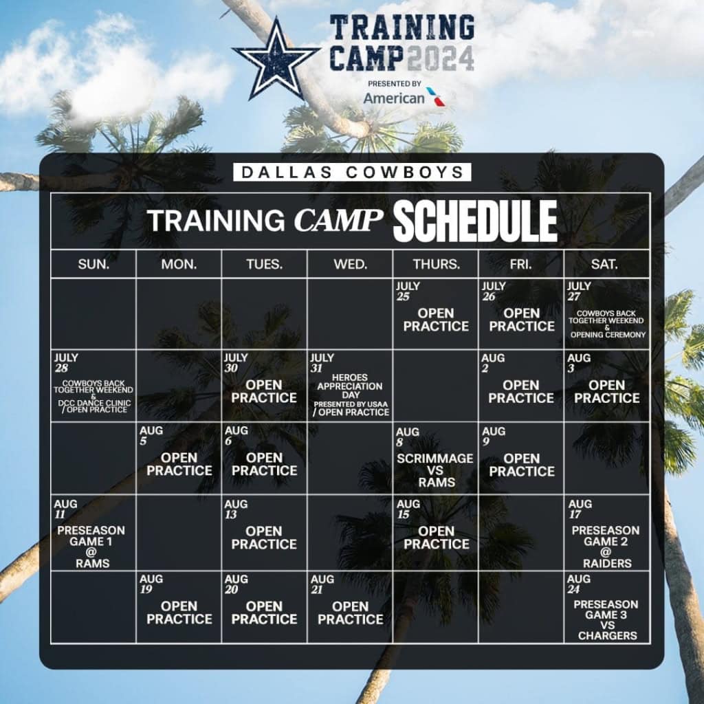 According to the practice schedule, the Cowboys will hold every practice as an open practice, meaning it’s open to the public and not just to the media.