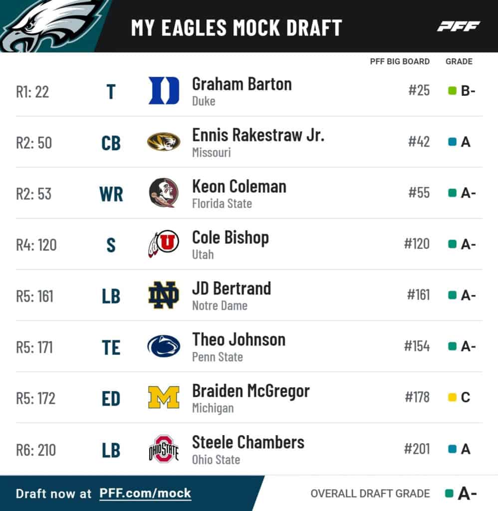 Pro Football Focus gave me an “A-” for this Eagles mock draft, and I have to agree with that assessment.
