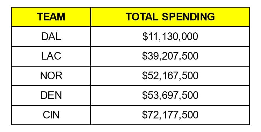 Well, “leading” is a strong word. A nice way of saying it would be to say they lead the league in frugality, but the reality is they’ve spent less money this offseason than any other team and it’s not even close.