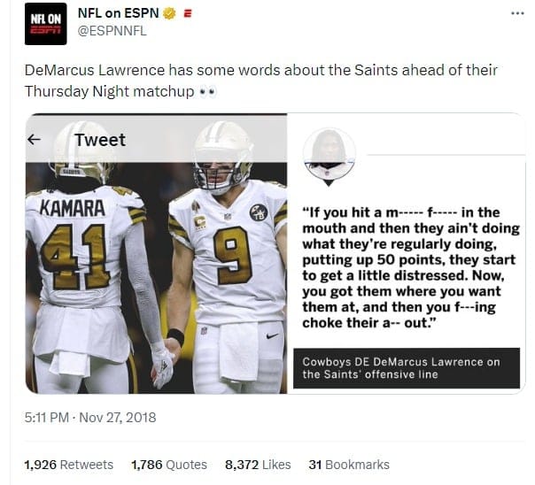 Does anyone remember his rant before playing the New Orleans Saints in 2018?
